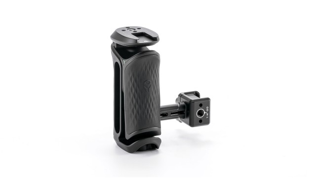 The handle features non-slip silicone, which provides a textured grip that improves stability for a confident hold and features mounting points such as a Cold Shoe Receiver and a 1/4″-20 thread with locating points for additional accessories
