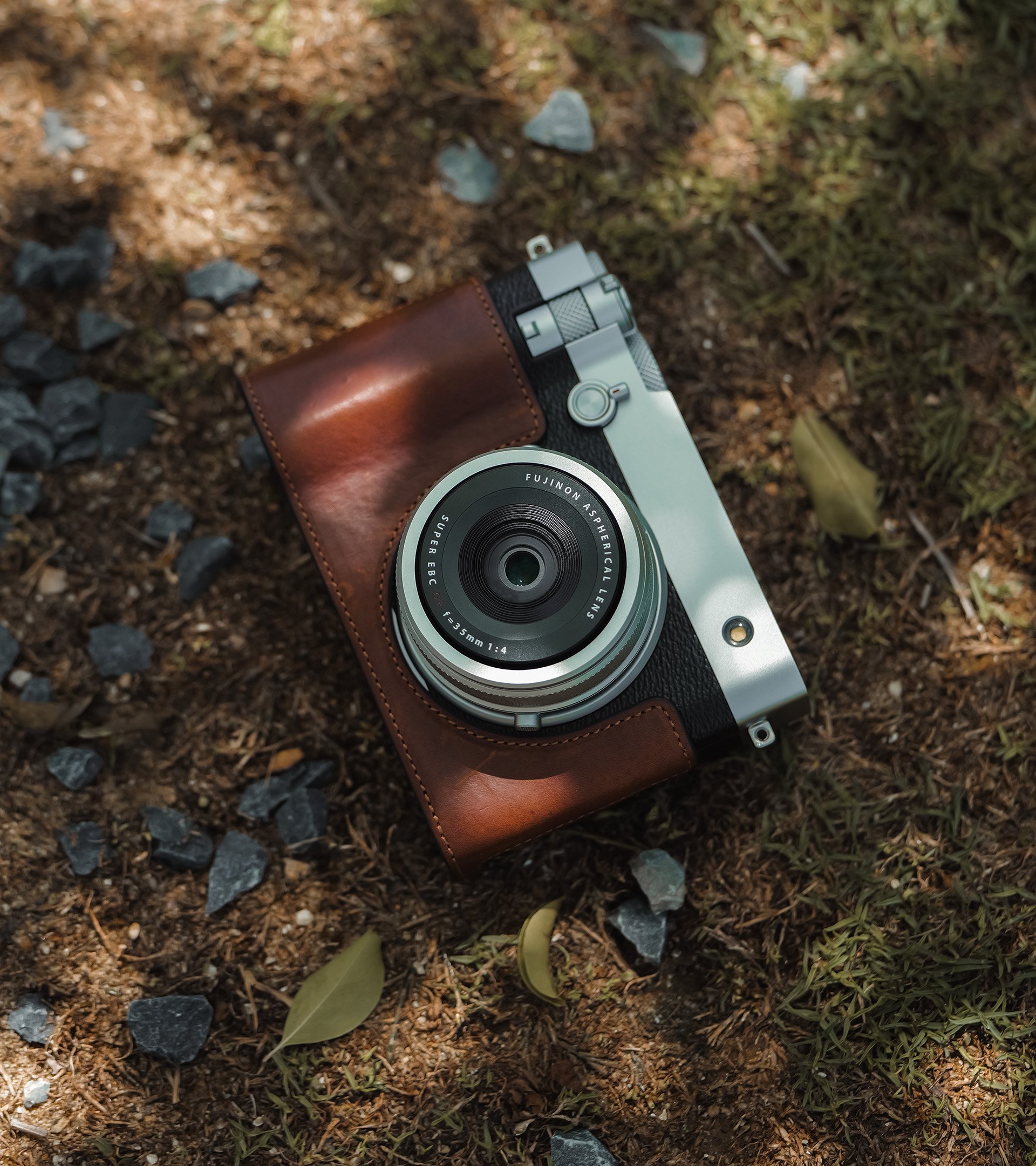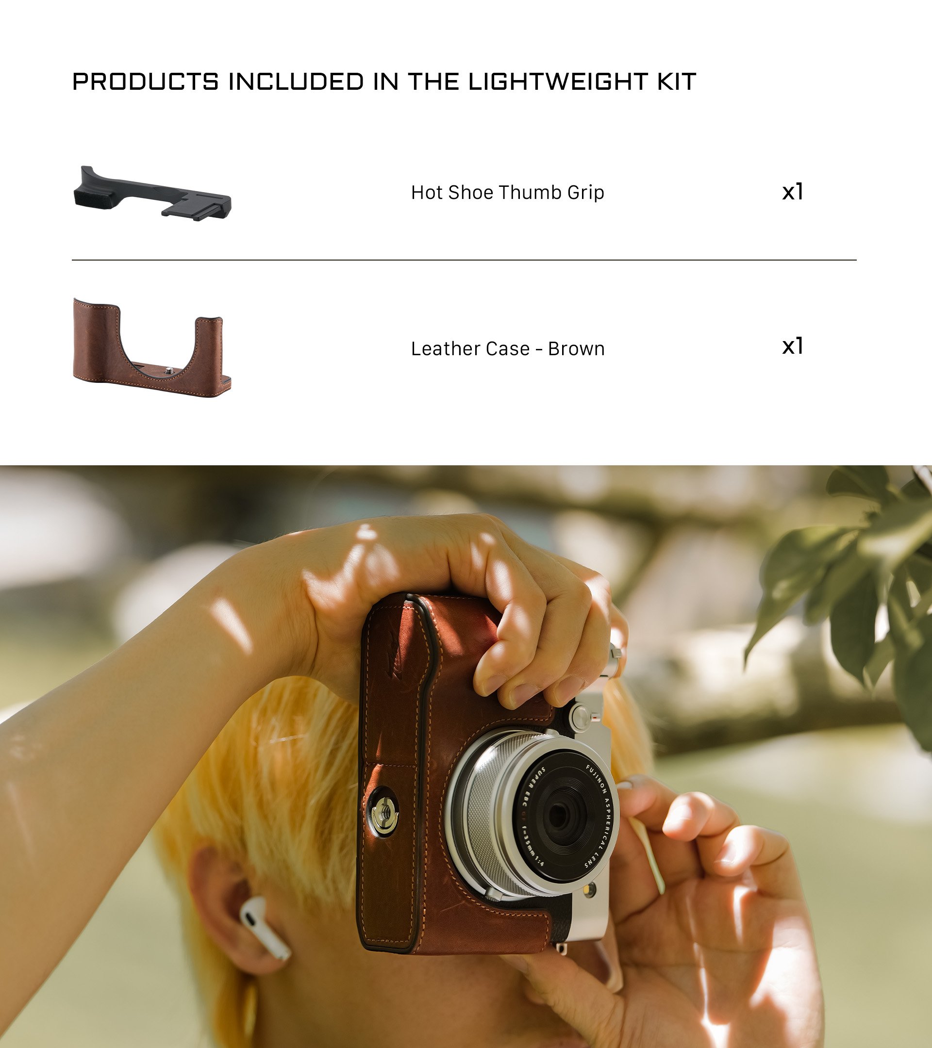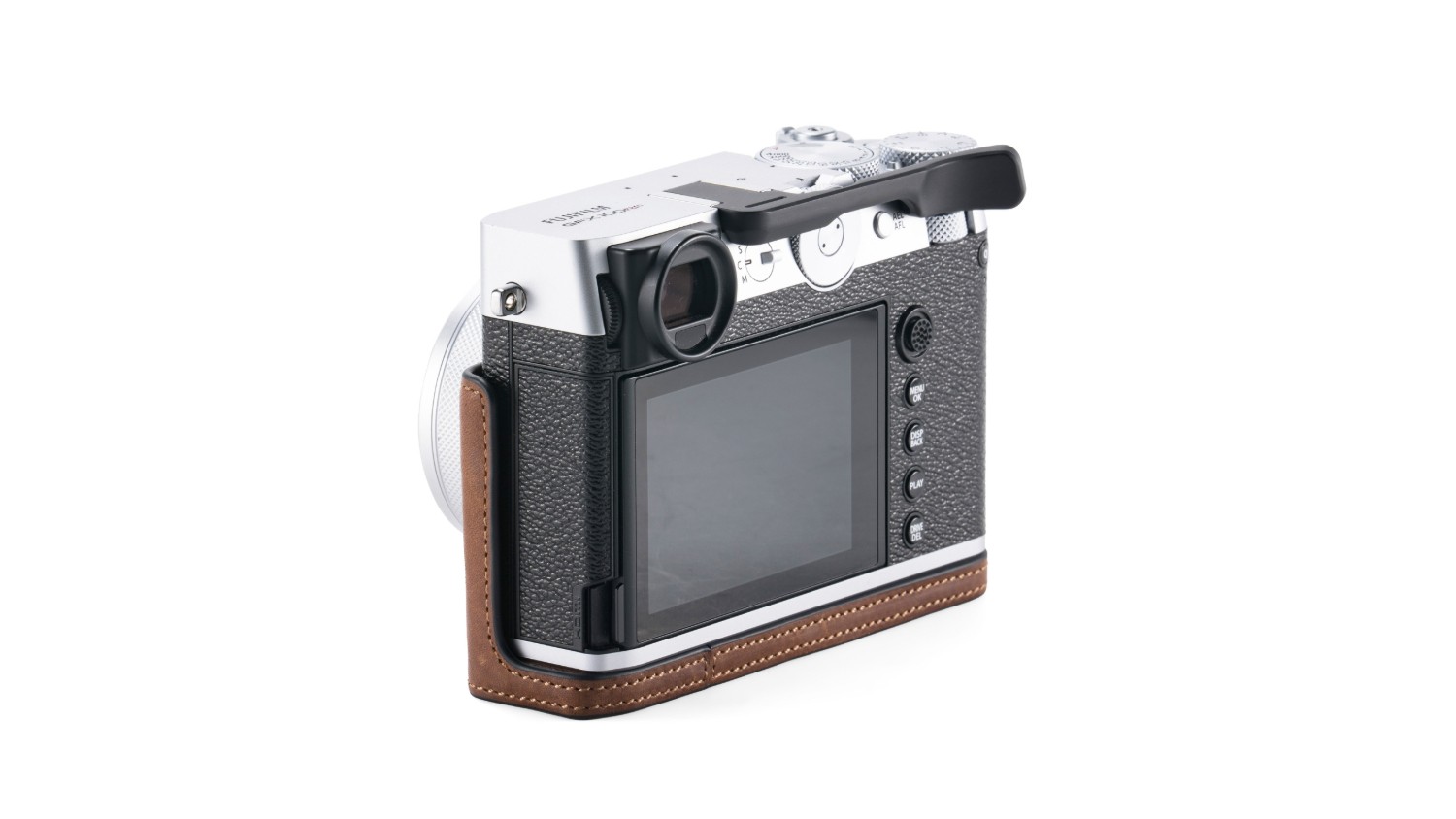 This kit includes a Leather Camera Case for Fujifilm GFX100RF, which mounts via a 1/4″-20 screw and provides a more comfortable way for users to operate and handle the camera body via the integrated hand grip.