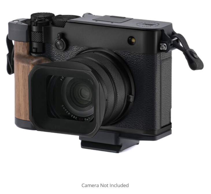 The Tilta TA-T81-B-B Vintage Camera Cage Travel Kit transforms the FUJIFILM GFX100RF into a highly ergonomic, vintage-inspired handheld and mounted shooting platform. Constructed from premium black anodized aluminum and rich walnut wood accents, this comprehensive kit includes a form-fitting L-shaped baseplate with integrated wooden hand grip, a protective top plate, a hot-shoe-mounted ergonomic thumb rest, rubber shoulder strap buckles, and a full Arca-Swiss compatible quick-release adapter. The design dramatically improves one-handed and two-handed stability for photography while adding critical protection and multiple mounting options without compromising the camera’s classic aesthetic.