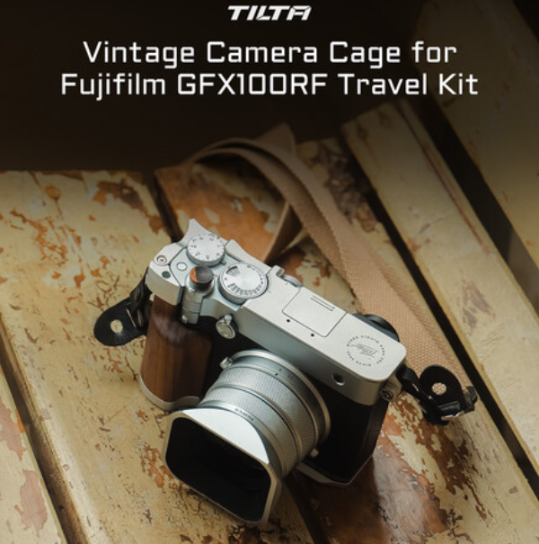 The Tilta TA-T81-B-B Vintage Camera Cage Travel Kit (Black) is a beautifully crafted aluminum and walnut wood protective rig designed exclusively for the FUJIFILM GFX100RF, combining retro aesthetics with modern functionality through ergonomic hand and thumb grips, a protective top plate, Arca-Swiss quick-release compatibility and a lightweight…