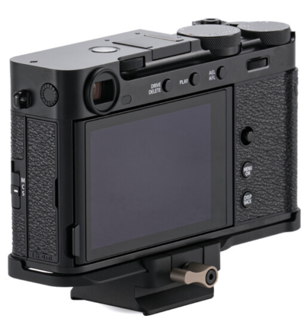 The Tilta TA-T91-A-B Vintage Grip with Baseplate transforms the compact FUJIFILM X-E5 into a far more ergonomic and stable shooting platform without sacrificing its minimalist charm. Precision-machined from black anodized aluminum with genuine walnut wood accents, the L-shaped baseplate extends a natural wooden handgrip that dramatically improves one-handed control and reduces fatigue during extended street, travel, or documentary sessions. The integrated Arca-Swiss dovetail allows instant mounting on gimbals, lightweight tripods, or quick-release clamps, while the open design preserves full access to battery, memory card and all side buttons.