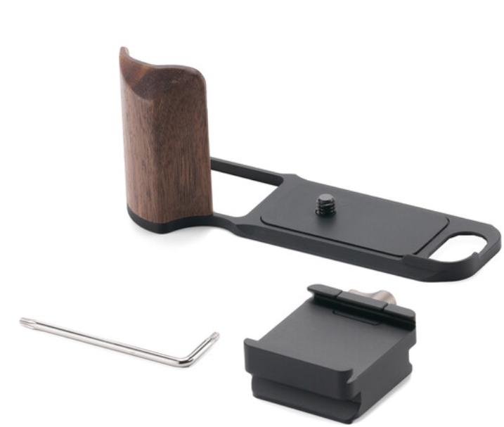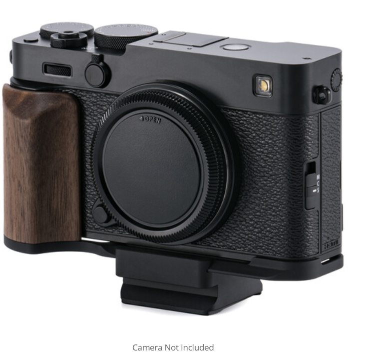 The Tilta TA-T91-A-B Vintage Grip with Baseplate (Black) is a beautifully crafted aluminum and walnut wood L-shaped ergonomic grip designed exclusively for the FUJIFILM X-E5, combining retro styling with modern functionality through a comfortable wooden handgrip, full Arca-Swiss compatibility and complete access to all camera controls and battery compartment.