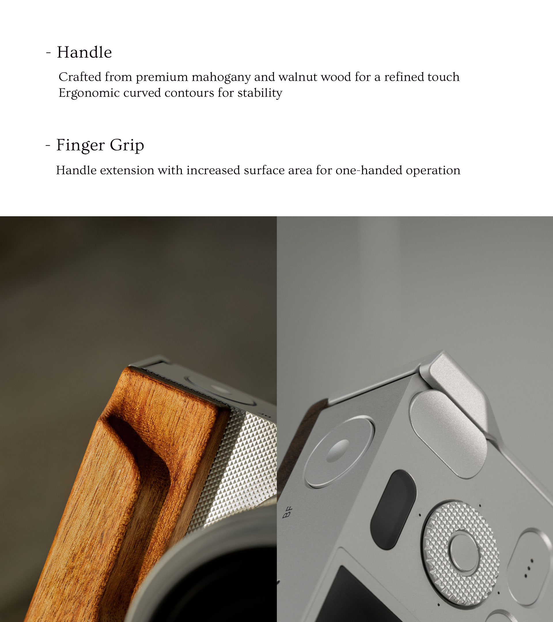 The foundation of this Kit is the L-Bracket shaped accessory featuring a Wooden Handgrip, crafted from Walnut Wood. This provides a more comfortable way to operate and handle the camera while still remaining compact and travel friendly.
