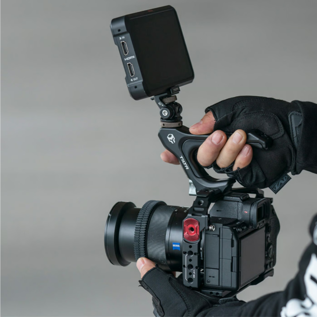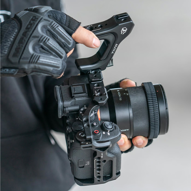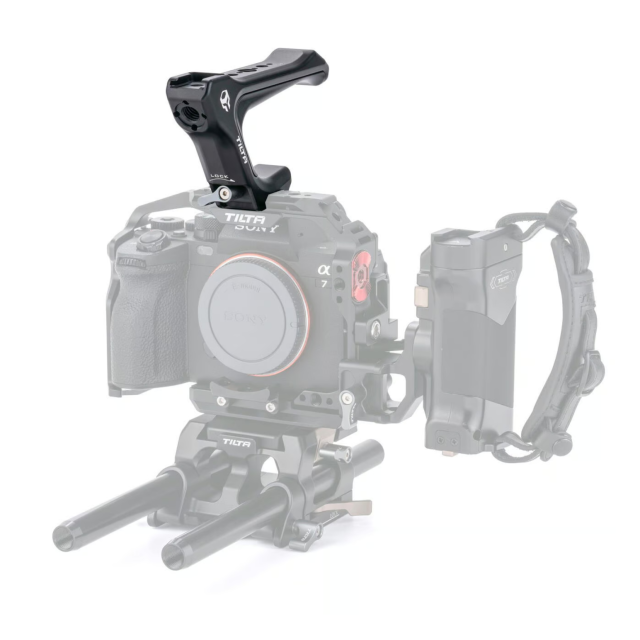 This top handle easily and safely attaches to the top of the Sony a7 IV's full camera cage.