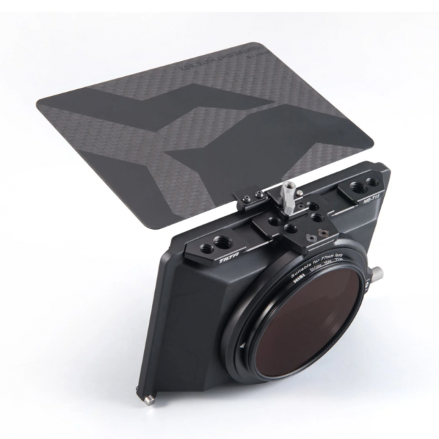Compact and Lightweight. Integral Design. The Mini Matte Box provides added protection for your lens and can help prevent light flares with the included top french flag. 1/4-20 and 3/8-16 mounting points and cold shoe mounts provide mounting points for any accessories including LED lights or microphones. The kit also includes a 15mm matte box support that attaches to the bottom of the matte box, securing your lens in place to provide lens stability. (does not support telescoping front element lenses).