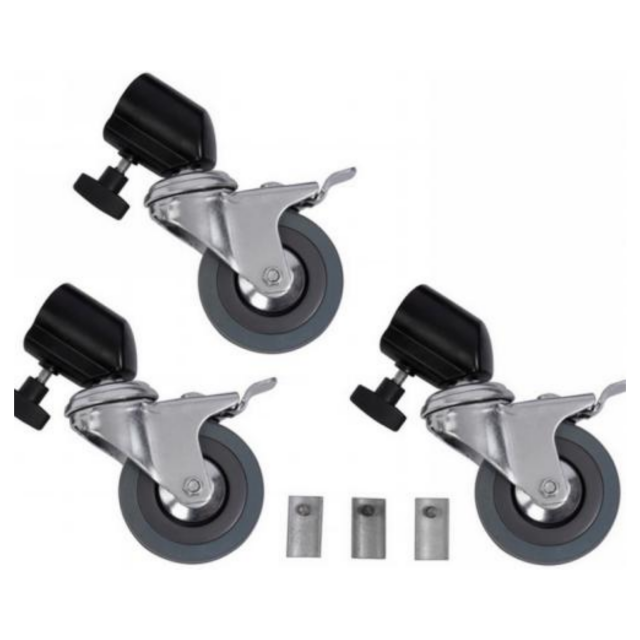 Wheel Set of 3 100mm with brakes and adapter for tripod legs