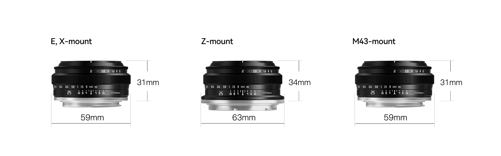 | Focal length | 25mm | Maximum aperture | F2.0 |