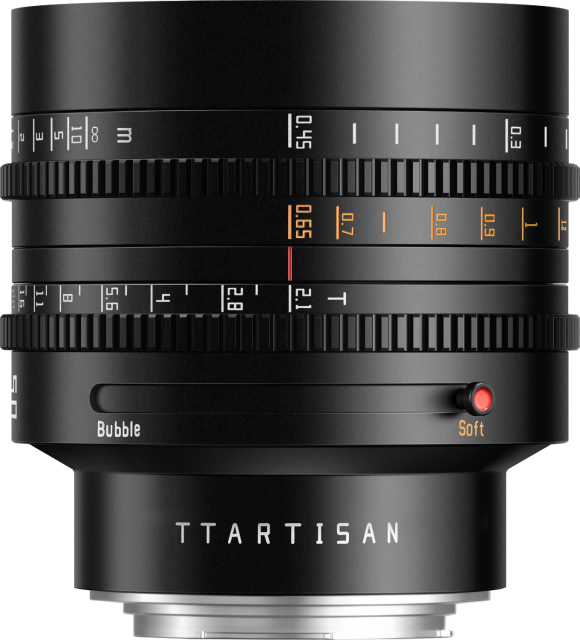TTArtisan FF 50mm T2.1 RF – World-First Dual-Mode Bokeh Cine Lens (Canon RF): One-click switch between dreamy “bubble” and creamy soft bokeh, bright T2.1 full-frame, 11-blade iris, 320° focus throw (Soft mode), 0.8 Mod cine gears, all-metal weather-resistant build, 82 mm filter thread.
