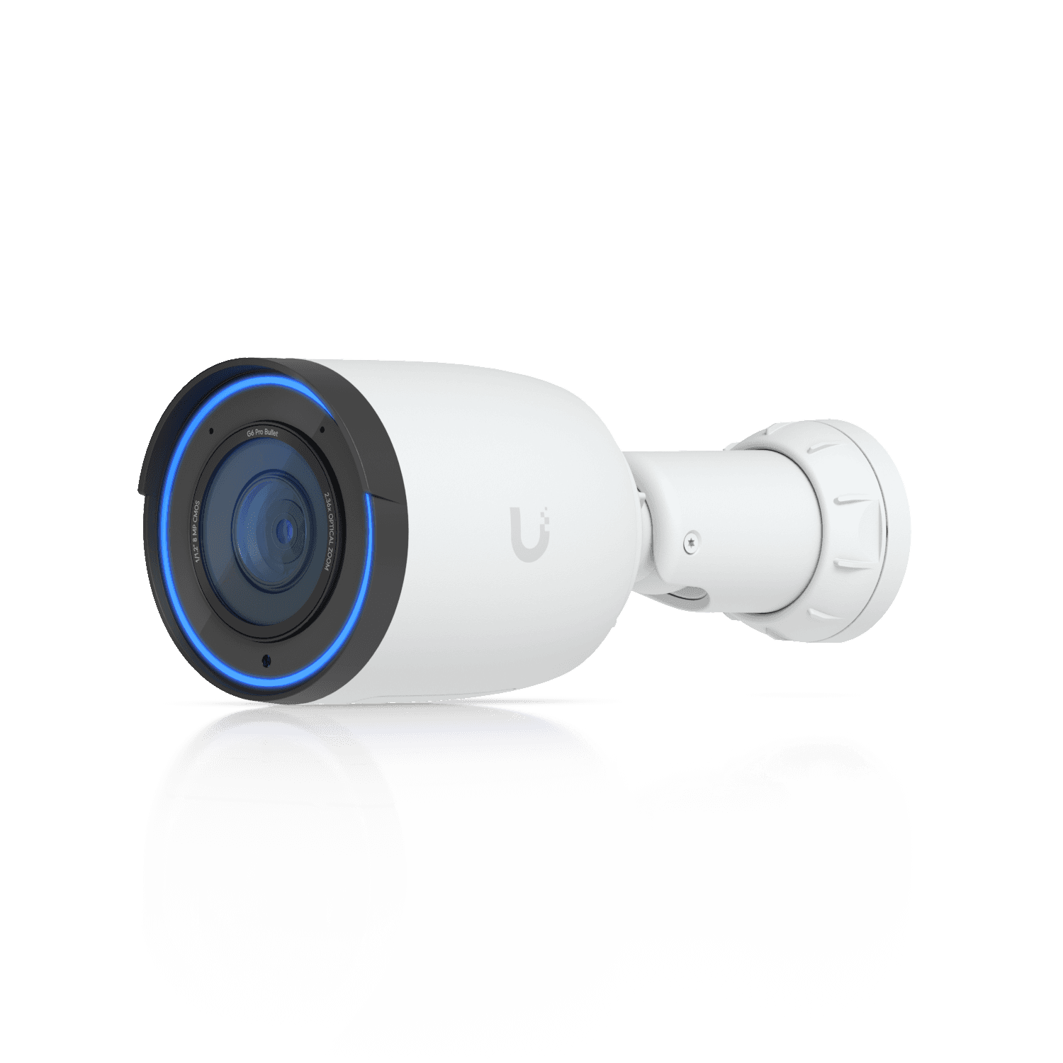 The Ubiquiti UniFi G6 Pro Bullet is a professional-grade outdoor bullet camera designed for high-resolution surveillance in demanding environments. It delivers 4K resolution at 8 megapixels (3840 x 2160) with a maximum frame rate of 30 FPS, powered by a quad-core Arm Cortex-A53 processor and a Multi-TOPS AI engine for advanced processing capabilities.