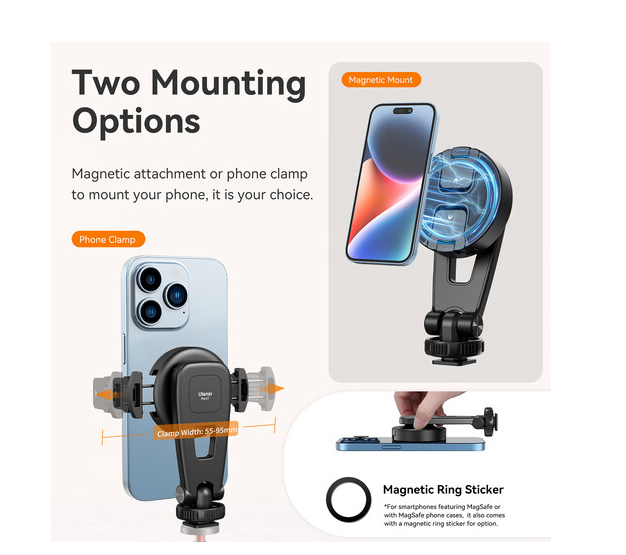 Lightweight yet durable, this 2-in-1 magnetic smartphone mount offers portability, flexibility, and quick setup for everyday content creation.