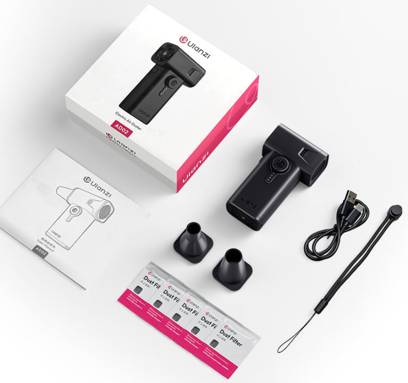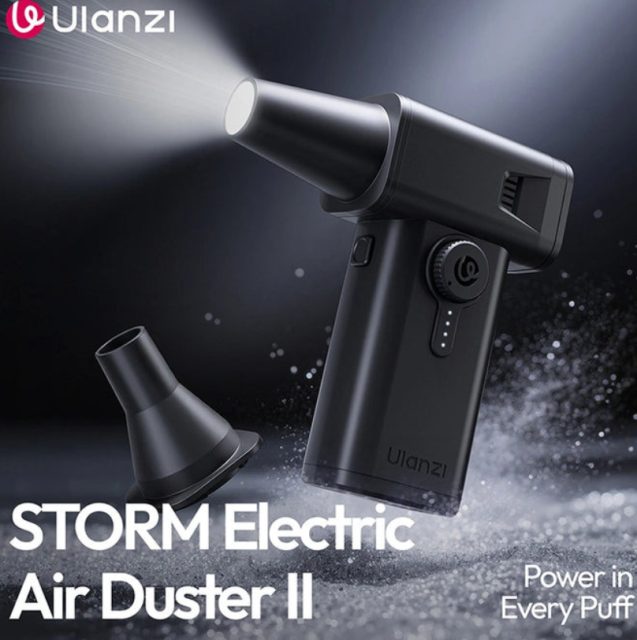The Ulanzi AD02 STORM Electric Air Duster II is a compact, palm-sized cleaning tool with turbocharged airflow, fast Type-C charging, and multi-functional design. Perfect for cameras, electronics, inflatables, and household cleaning, it delivers powerful, precise air blasts with LED illumination and easy-to-change filters.