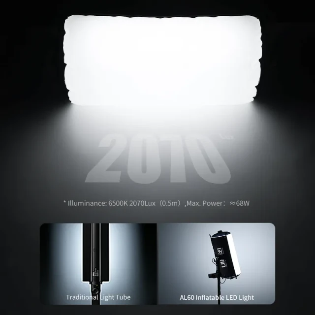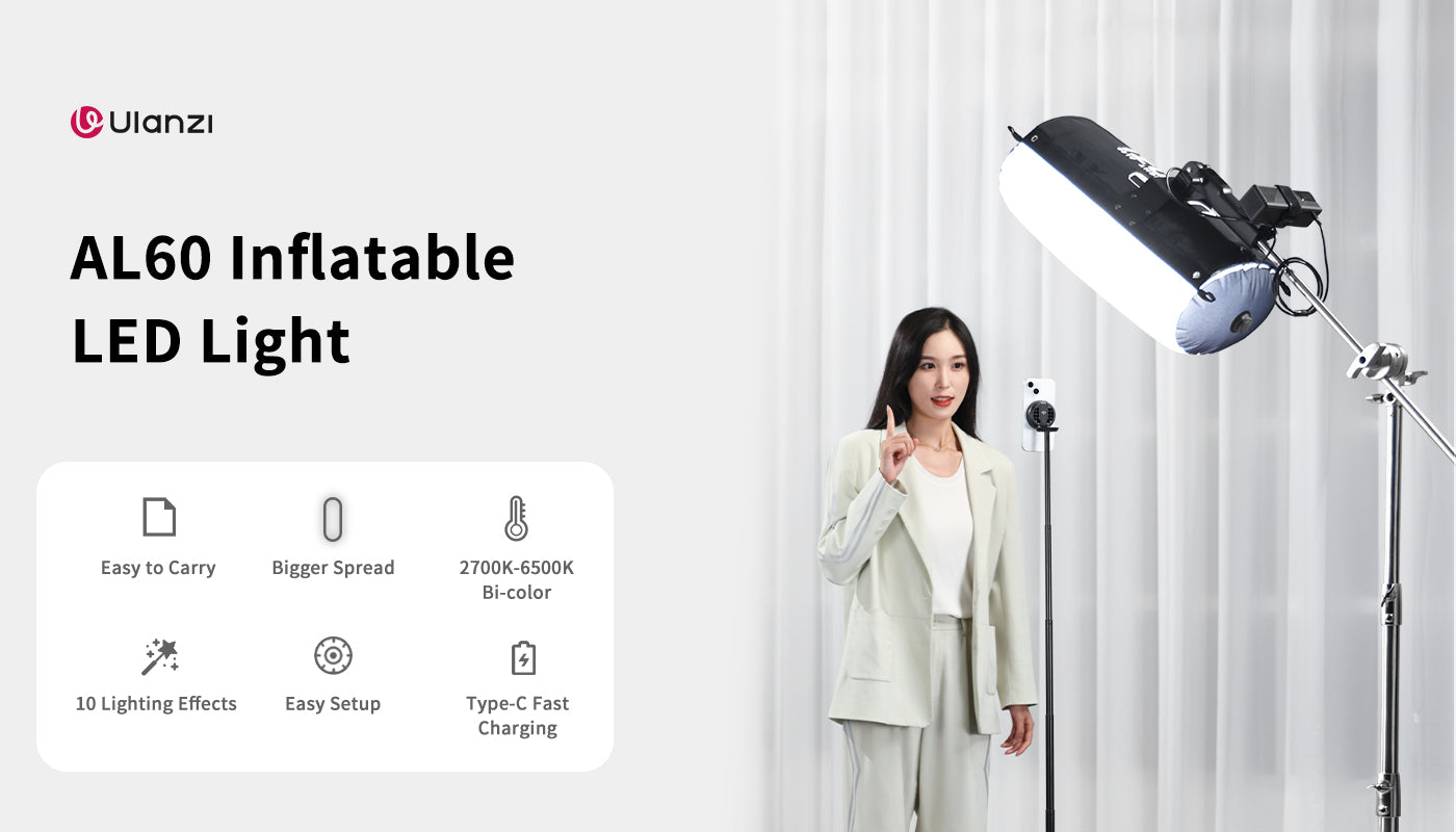 This light is ready to use in just 20 seconds with the automatic inflation pump. No manual pumping or blowing required - just press a button for quick, hassle-free setup. Designed for convenience, this inflatable LED light folds down easily, making it the ideal companion for outdoor photography. Upgraded to deliver cinematic-quality soft lighting that enhances portraits, giving them a natural-beauty enhanced glow.
