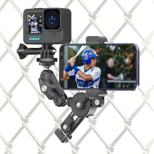 The Ulanzi Baseball Fence Mount is a dual-device mounting solution that securely clamps onto chain-link fences, allowing you to record games or practices with an action camera and smartphone side by side. Featuring a ball head, adjustable phone clamp, and durable construction, it’s ideal for capturing multiple angles from the sidelines.