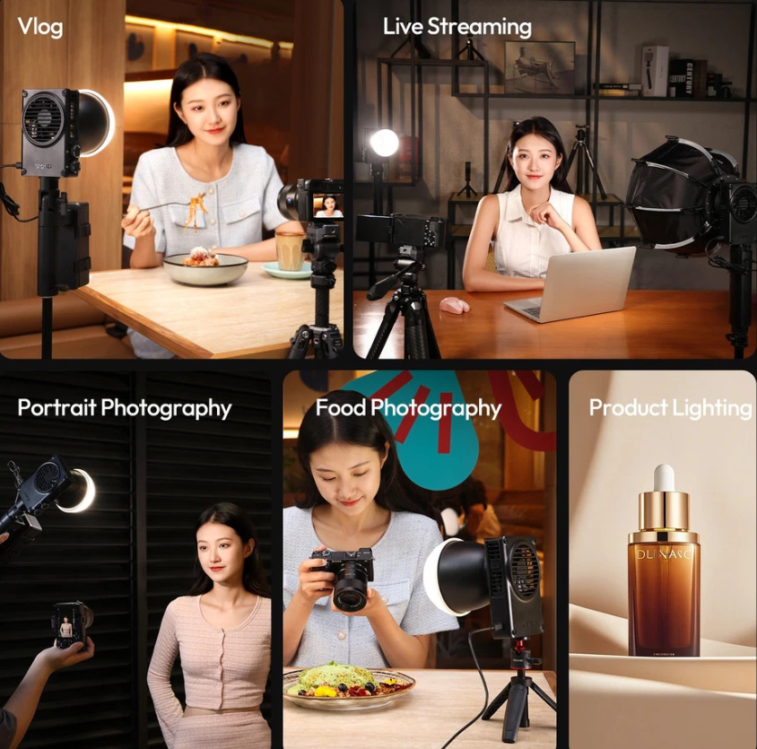Built for continuous use, the hollow-body design with a high-speed fan ensures efficient cooling, keeping your light stable and preventing overheating during long shoots. Compatible with Mini Bowens mounts, the C01 works with reflectors, softboxes, and light modifiers to enhance your creative possibilities.