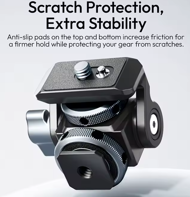 Constructed from durable aluminum, the ball head offers long-lasting performance while remaining lightweight and portable. With a load capacity of up to 3kg, it supports a variety of camera setups, from compact mirrorless cameras to lightweight DSLR rigs.