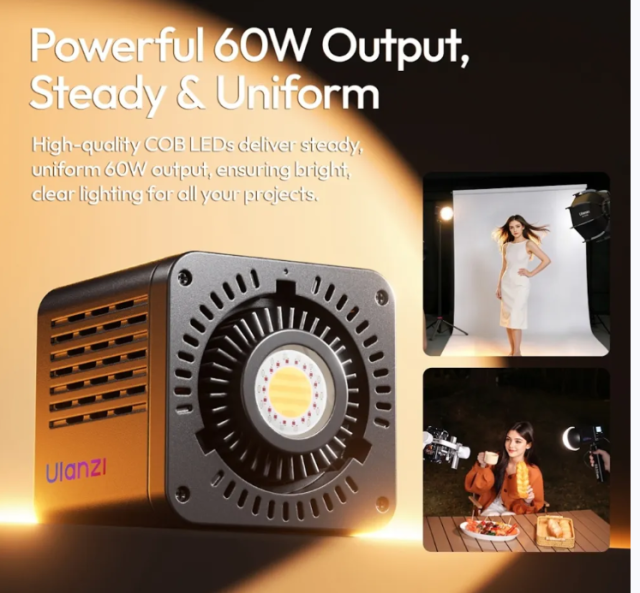 The Ulanzi C60RGB 60W RGB COB LED Video Light is a compact, professional-grade lighting solution for creators. With full RGB and adjustable white/warm light, a built-in 3300mAh battery, 20 scene simulation modes, and mini Bowens mount compatibility, it delivers powerful, versatile illumination for portraits, vlogs, live streaming, and cinematic content.