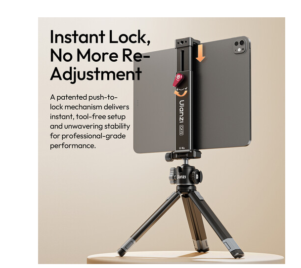 The Ulanzi CA15 OneLock Tablet Clamp is a professional-grade mounting solution designed to securely hold tablets ranging from 7.9" to 12.9". Built for creators, educators, streamers, and professionals, it provides a stable and adaptable platform for using tablets with tripods, stands, and camera rigs.