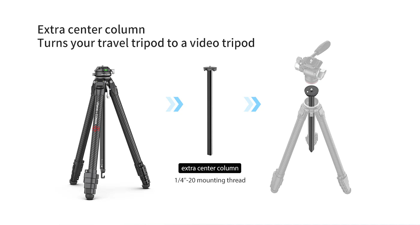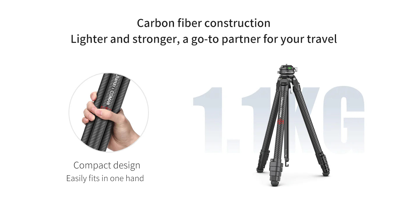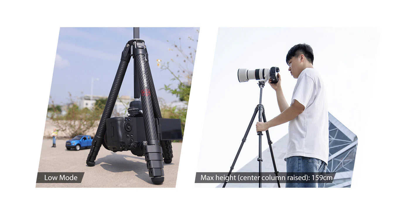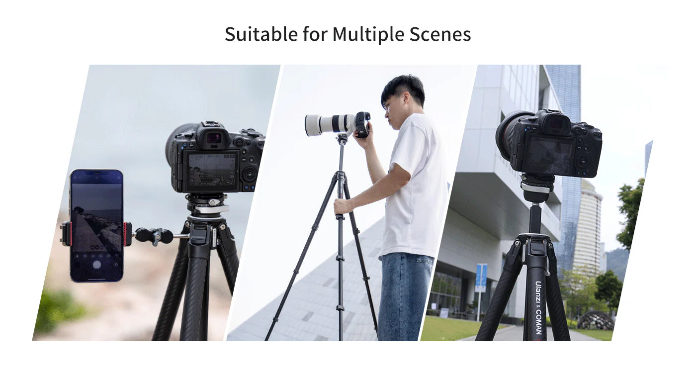 Ulanzi Zero F38 Quick Release Travel Tripod: Capture stunning visuals on the go with this compact and lightweight (1.1kg / 2.4 lbs) carbon fiber travel tripod. Effortlessly switch between setups thanks to the built-in ball head and F38 quick release plate, while the included extra center column offers Arca-Swiss compatibility for ultimate flexibility. Shoot from various angles with adjustable leg positions (20°/55°/75°) and a removable short column for low-angle shots. The Ulanzi Zero F38 is built to last, supporting up to 18kg / 39.6 lbs and featuring all-serviceable parts with a lifetime guarantee. Unleash your creativity and capture unforgettable moments wherever you wander!
