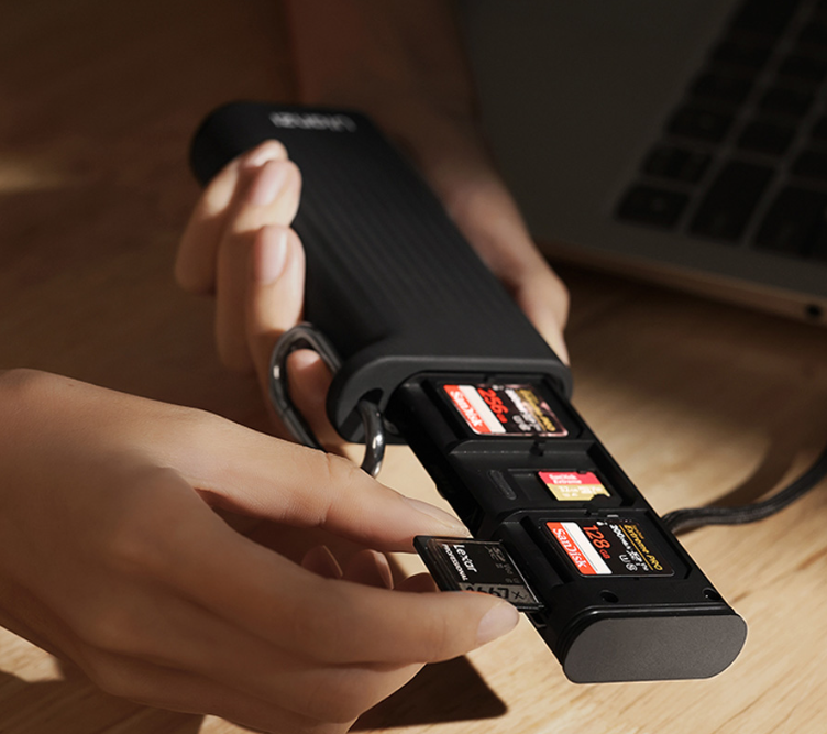 The Ulanzi CR2 All-in-One Card Case (Black) is a compact storage and card reader in one, supporting SD and TF cards with high-speed USB 3.1 transfer. Featuring built-in USB/Type-C cables, dual card reading, and IP54 protection, it’s the perfect portable solution for photographers and content creators.