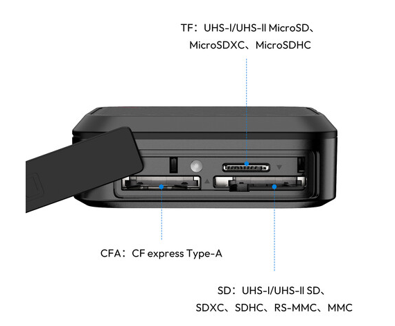 Supports CFexpress Type A, SD, and microSD cards