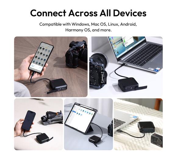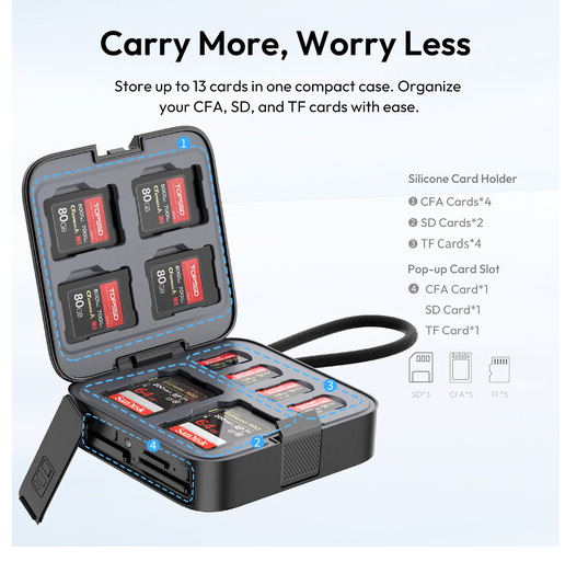 The Ulanzi C078GBB1 CRC10 3-in-1 Card Reader Case combines high-speed data transfer and secure media storage in one compact design. Supporting CFexpress Type A, SD, and microSD cards, it features an integrated 10 Gb/s USB-C 3.2 Gen 2 cable, multiple storage slots, and a durable aluminum alloy exterior for efficient heat dissipation…