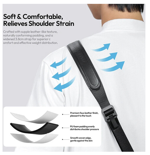 The Ulanzi CSS1 U-Snap Camera Shoulder Strap in Midnight Blue combines comfort, strength, and convenience. With a quick-release system, premium faux leather padding, and adjustable length, it securely supports cameras up to 132 lb while keeping you comfortable during long shoots.