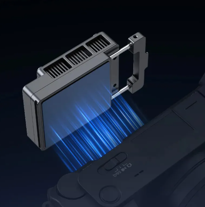 Designed for versatility, the CU01 offers three cooling modes: silent mode (level 1), fast cooling (level 2), and AUTO mode for intelligent temperature regulation. Its pop-up spring mount ensures secure attachment to 99% of flip-screen cameras without loosening, while a real-time LED indicator monitors temperature and adjusts settings to protect the camera from overheating. Lightweight and compact, it’s made from durable aluminum alloy, plastic, silicone, and copper materials, making it an essential accessory for professional photographers and videographers.