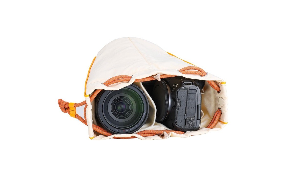 The DS01 can accommodate mirrorless cameras with lenses up to 16 cm in length. There are also two additional storage compartments for accessories such as batteries and memory cards.