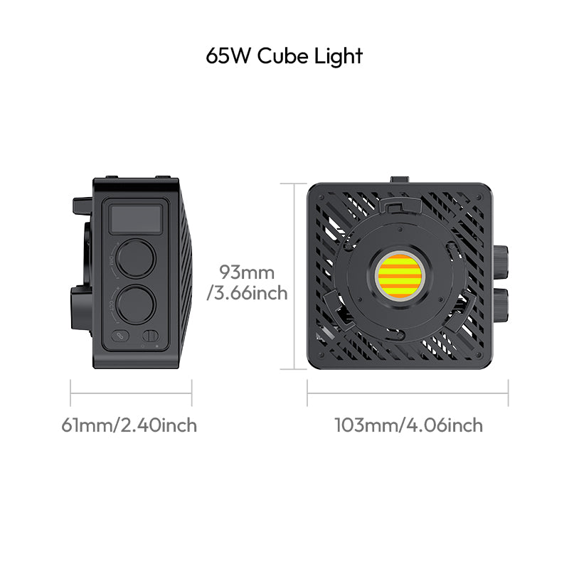 TinybutMighty,Pro-Ready. The 65W Cube Light delivers professional-grade bi-color lighting (2500K-6500K) in a compact design. With seamless brightness and temperature control, this ultra-portable light ensures adaptable illumination for videos, vlogs, and photography, empowering creators to achieve perfect lighting anywhere.