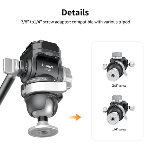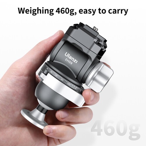 The Ulanzi EH09 Ballhead Arca is a compact yet highly functional inverted ball head designed for professional and hobbyist photographers alike. With 118° of vertical tilt and full 360° panning, it enables precise framing and smooth transitions between horizontal and vertical shots. Dual integrated bubble levels on the base and side ensure accurate leveling for consistent results. The innovative detachable handle doubles as a screwdriver with seven interchangeable heads, allowing customizable adjustments directly on the field. Compatible with Arca-type quick release plates and 3/8" to 1/4" screw adapter tripods, the EH09 combines lightweight portability (460 g / 1 lb) with durable construction. Its flat base, wide tilt range, and integrated leveling tools make it ideal for studio setups, tabletop photography, or mobile shooting rigs.