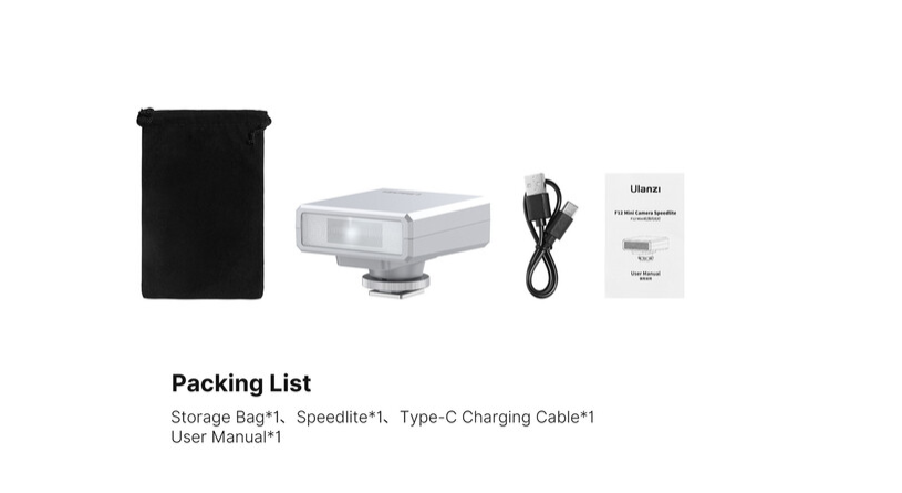 Powered by a built-in 1200mAh rechargeable battery, the F12 supports USB-C charging and can be powered via compatible power banks for extended use. A full recharge takes approximately 2.5 hours. With its universal hot shoe mount, the F12 is compatible with leading camera brands including Canon, Nikon, Olympus, Panasonic, and Sony, making it suitable for both digital and film camera systems.