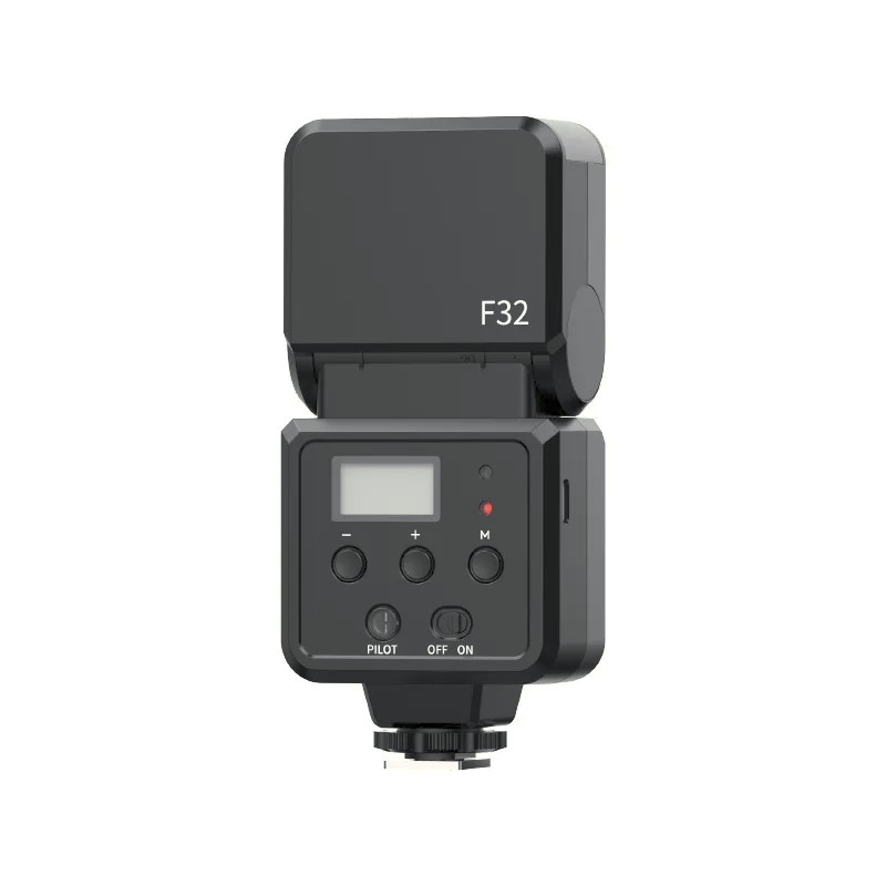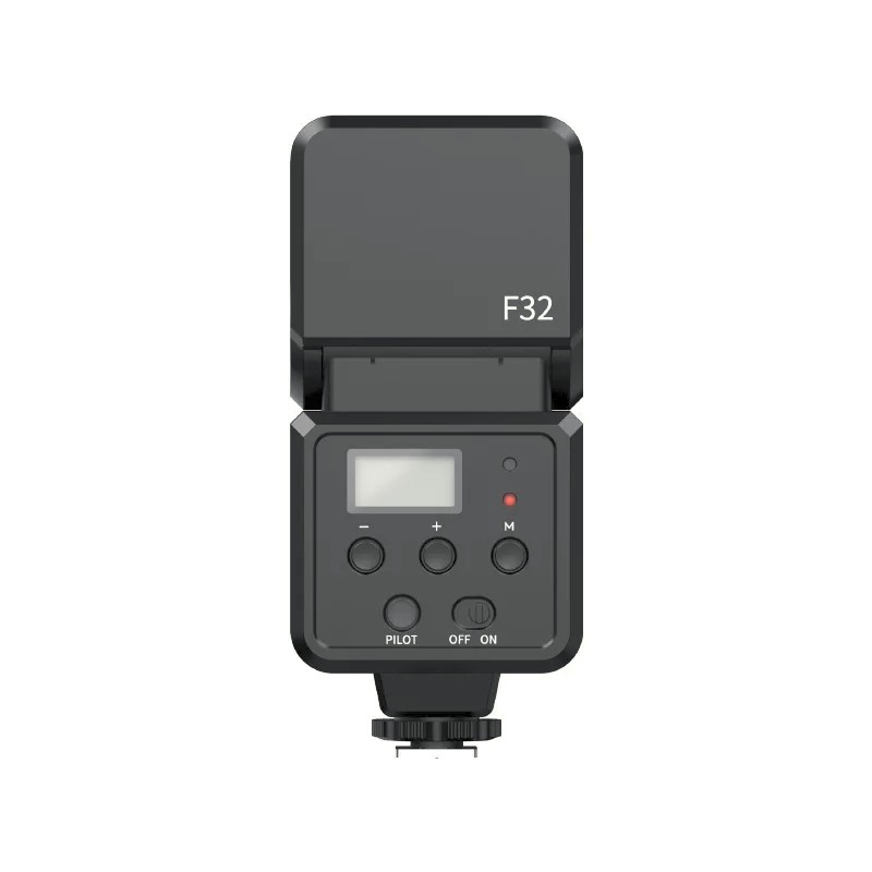 The Ulanzi F32 Camera Flash Speedlite V2 is a versatile and portable mini flash designed to enhance your photography in low-light situations. Compatible with major camera brands such as Canon, Sony, Nikon, Panasonic, Olympus, and Pentax, it mounts easily via a standard hot shoe. With a guide number (GN) of 32 and high-speed sync up to 1/250s, this flash delivers consistent and precise exposure. Its recycling time ranges from 1 to 4 seconds, enabling rapid consecutive shots, especially at lower flash levels. The built-in display and intuitive buttons provide easy control, even for beginners, and the flash supports both automatic and manual modes. In auto mode, the flash adjusts output automatically, while in manual mode, users can set the brightness to their preference. Please note, the F32 does not support TTL or 2.4G wireless control.