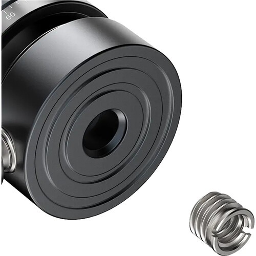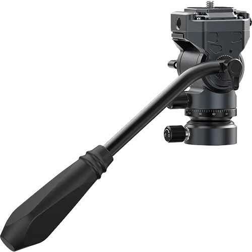 With a 6.6 lb payload capacity, the F38 fluid head mounts on virtually any tripod using its 1/4"-20 base thread or the included 3/8"-16 adapter. The leveling base allows precise adjustments on uneven surfaces, while the detachable handle enables smooth horizontal and vertical control, and reduces storage footprint during travel. Degree markings on the panning axis allow repeatable and accurate positioning for multi-shot setups.