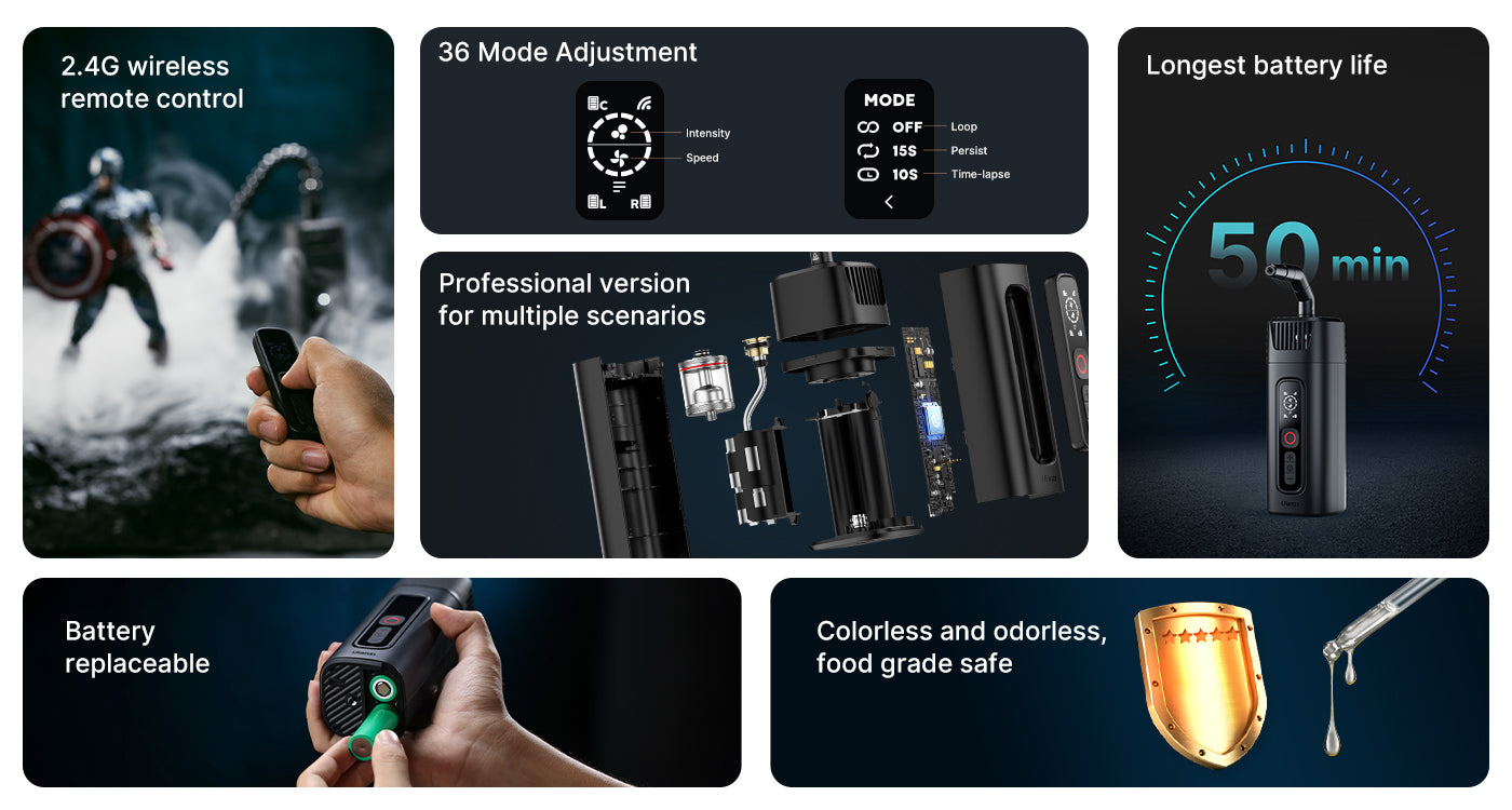 Ulanzi FM01 FILMOG Ace Portable Fog Machine, Smoke Machine with 36 fog effects in different intensities, 40W fog with remote control (up to 10 meters) portable hand-held fogger, perfect for photography, outdoor events, parties, stage effects, Halloween or weddings.