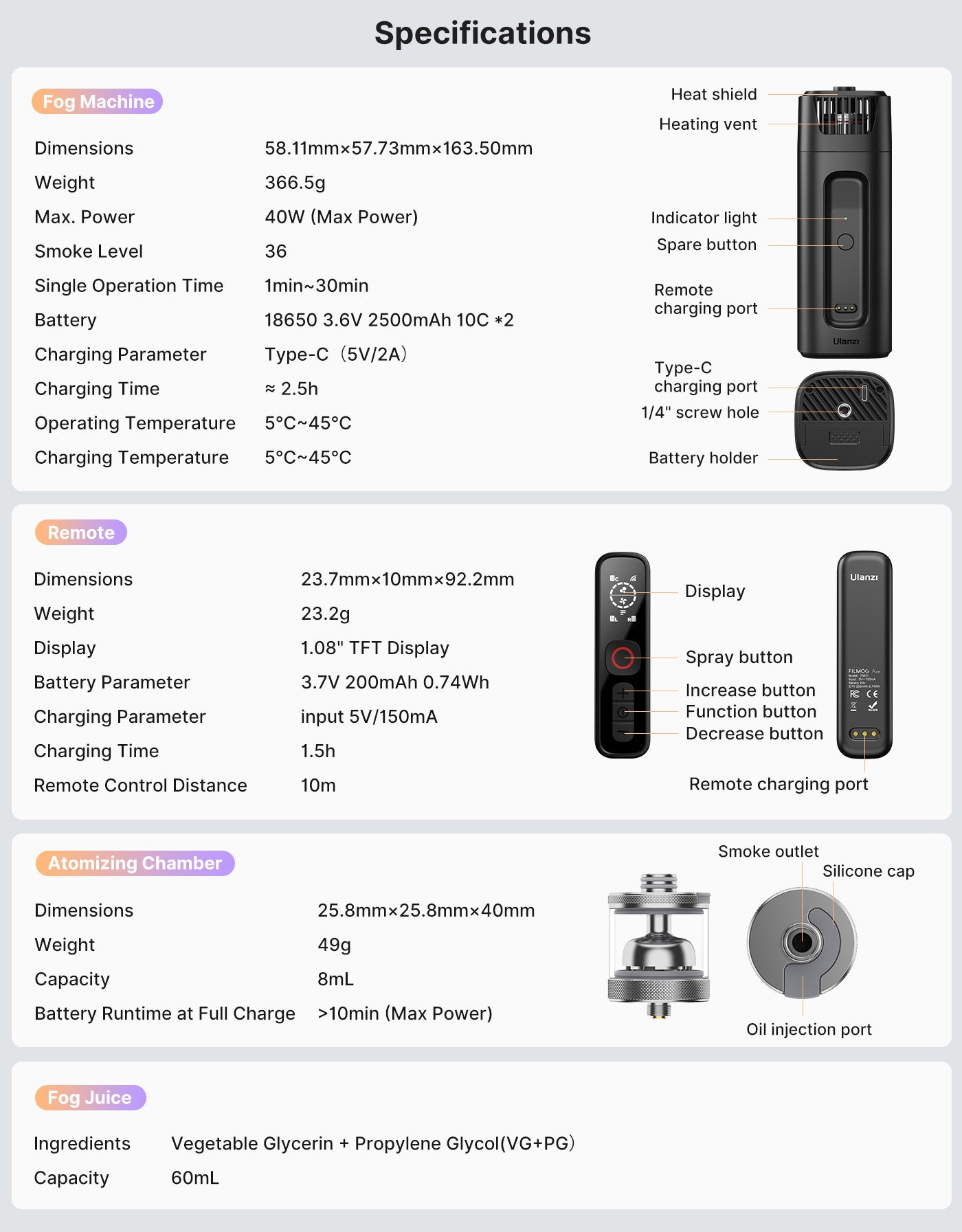 Tips: Click the link to watch the DIY Fog Juice video>> "Tutorial | How to DIY Ulanzi FM01 Fog Machine Juice?"