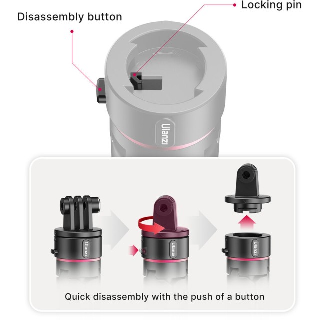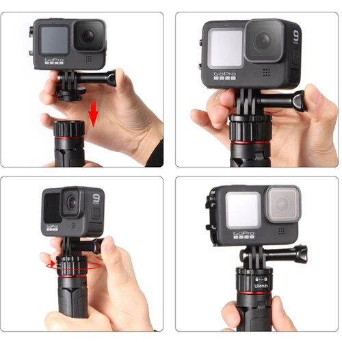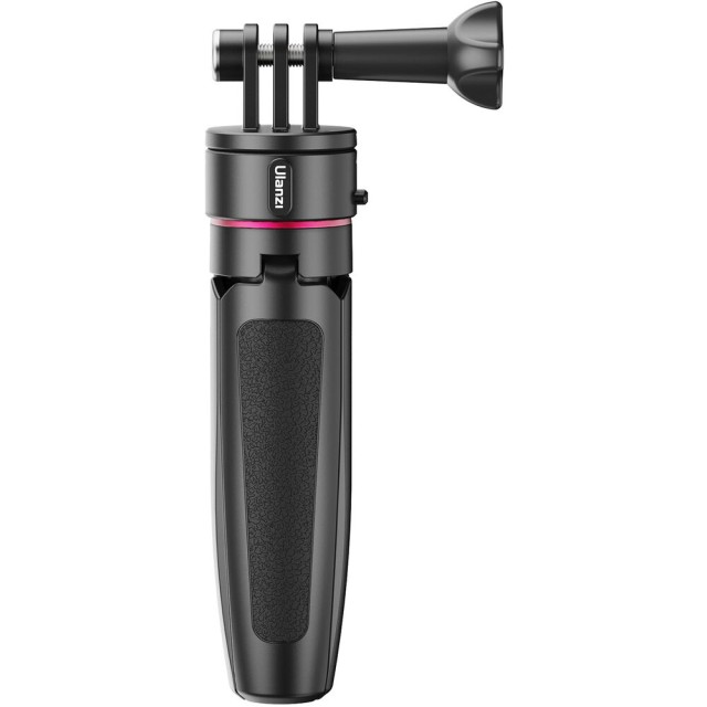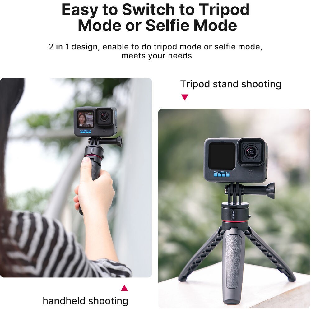 The Ulanzi Go-Quick II 2-in-1 Mini Tripod is a smart, lightweight support solution for action camera users who need speed and flexibility. Built to work seamlessly with GoPro, DJI, and Insta360 action cameras, it uses a magnetic locking quick-release system with a 2-prong mount for fast, secure attachment without fumbling with screws. The tripod’s three articulating legs provide stable tabletop support, while the built-in 4-section extension pole expands from 5.7 to 10.4 inches, allowing it to double as a compact selfie stick or handheld grip. Constructed from durable ABS plastic and aluminum, the Go-Quick II is easy to carry at just 3.4 oz, making it ideal for travel, vlogging, sports, and everyday action shooting.