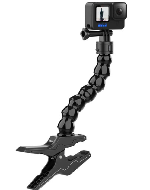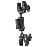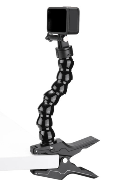 The Ulanzi Go-Quick II functions as a modular, high-torque flexible arm for action camera and accessory mounting, featuring a spring-loaded C-clamp with 5–50 mm jaw range and non-slip silicone pads (Shore A 60 durometer) for secure attachment to edges like monitor bezels or tabletops. The 189 mm powder-coated steel gooseneck provides full 360° articulation with positional memory (friction torque 0.5–1 Nm), supporting up to 328 mm max height when extended, while the integrated 3-prong mount uses magnetic quick-release (neodymium N35, 2 kg shear force) compatible with GoPro Hero series, DJI Osmo Action 5 Pro, and Insta360 GO 3S without adapters. Dual 1/4"-20 UNC threads (one on clamp base, one on mount) allow daisy-chaining arms or attaching LED lights/microphones (payload distributed 2 kg total, 1.5 kg vertical). Constructed from matte-black powder-coated steel (corrosion-resistant, IP54 splash-proof) and ABS plastic (impact-rated 5 J), it folds to 200 × 70 × 45 mm for storage in 15" laptop sleeves, operates in –10 °C to +60 °C environments, and weighs 210 g for portability. Ideal for overhead tabletop shots, the arm locks via integrated knob (0.8 Nm torque) to prevent drift under load.