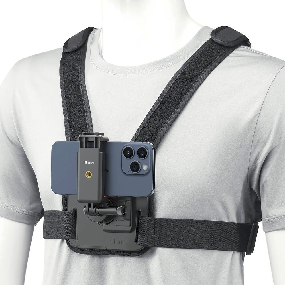 The Ulanzi Go-Quick II Magnetic Chest Mount Harness allows hands-free POV filming with action cameras or smartphones up to 3.54" wide. Adjustable for all adult sizes, it features a 1/4"-20 threaded screw, cold shoe mount, 360° rotation, and 180° tilt for versatile shooting angles.