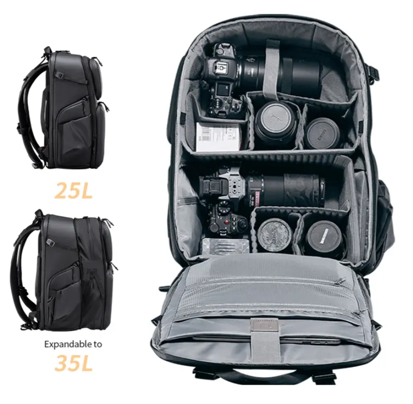 35L Capacity (Expandable to 40L), ideal for up to 2 cameras, 6 lenses, and drone accessories