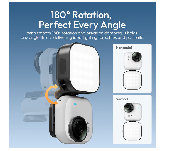 The Ulanzi IN07 Mini Magnetic LED Vlogging Light is a pocket-sized, high-CRI fill light designed for Insta360 GO Ultra and other cameras. With 5600K daylight color, three brightness levels, 180° adjustable rotation, and a compact magnetic design, it delivers soft, natural illumination for vlogs, selfies, and content creation on the go. Lightweight, portable, and USB-C rechargeable, it’s the perfect companion for influencers, vloggers, and photographers seeking versatile lighting anywhere.
