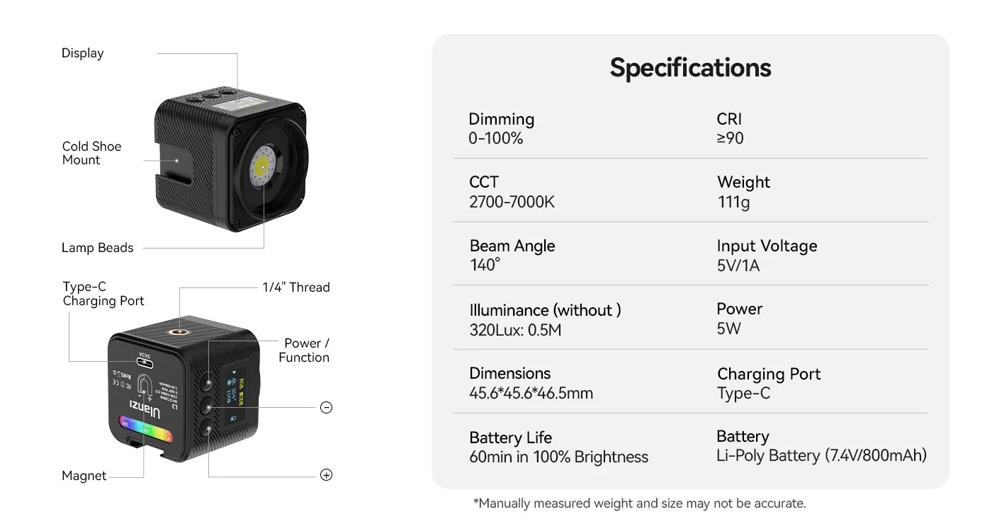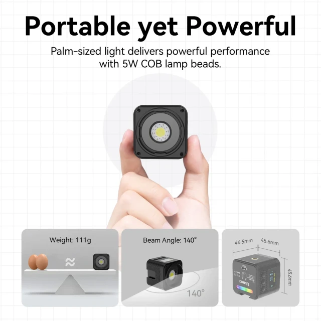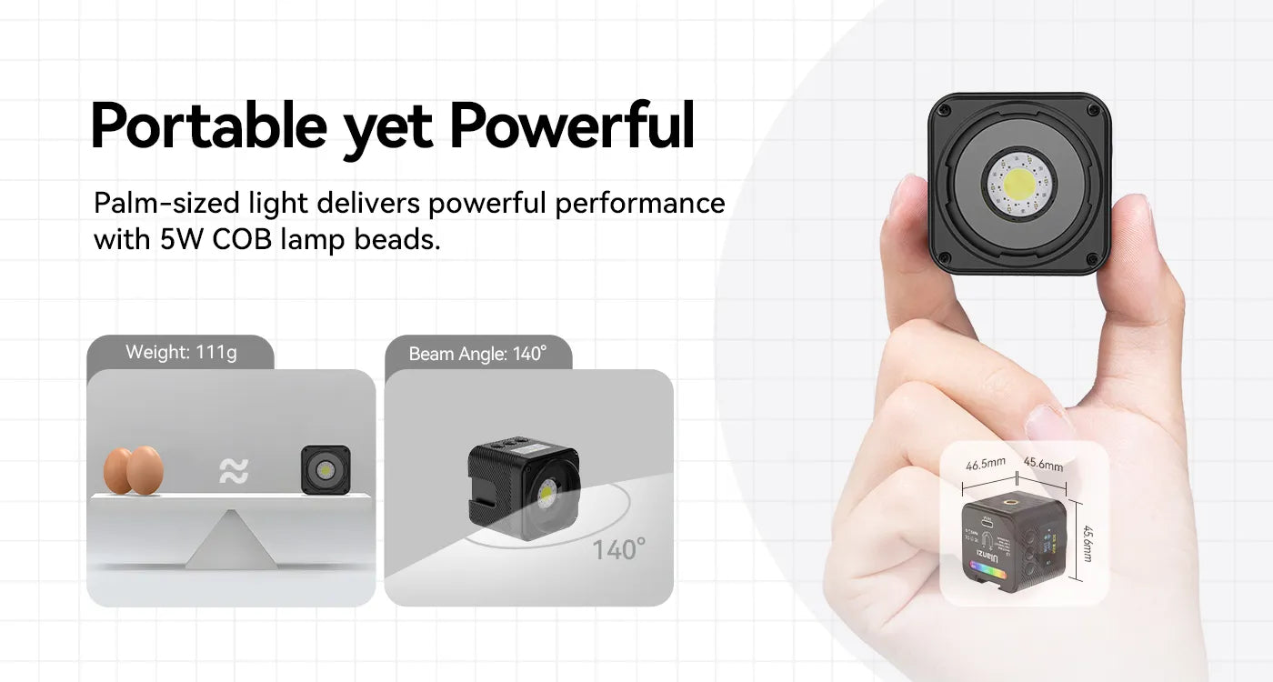 Versatile Lightning for Every Scenario. Portable palm sized light delivers powerful performance with 5W COB lamp beads. 20FX for Unlimited Creativity.