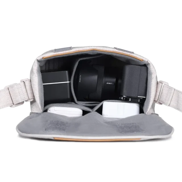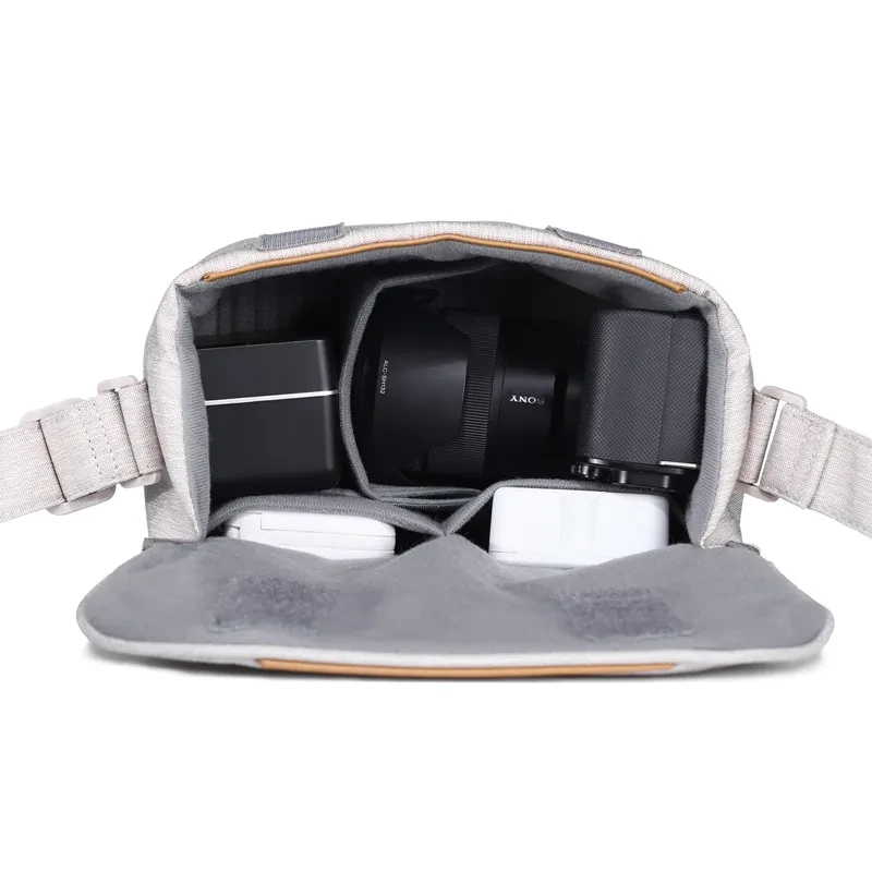 The Ulanzi Light weight Bag B011 is a (235g) polyester sling bag with 3L capacity (expandable to 4L), featuring customizable DIY storage via removable dividers, Velcro access, water-proof exterior, velvet interior protection, rear zip pocket, and adjustable strap for shoulder/crossbody carry—ideal for compact camera gear on daily outings or tra…