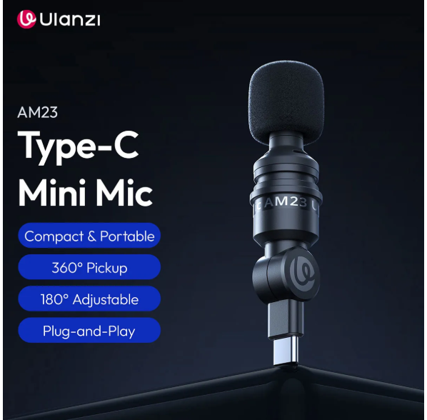 The Ulanzi AM23 USB Type-C Omnidirectional Mini Microphone delivers clear, professional-quality audio in a compact, plug-and-play design. Ideal for vlogging, podcasts, online meetings, and mobile recording, it features 360° sound pickup, shock and wind noise reduction, and instant USB-C compatibility with phones, tablets, and computers.