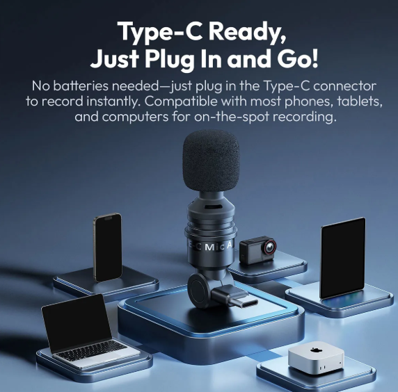 The AM23 features a USB Type-C plug-and-play interface, requiring no batteries or drivers—simply plug it in and start recording instantly. Its 180° adjustable rotation lets you position the microphone exactly how you need it, while the shock-absorbing silicone mount and windproof sponge minimize vibration, wind noise, and pop sounds for stable recordings even in challenging environments.