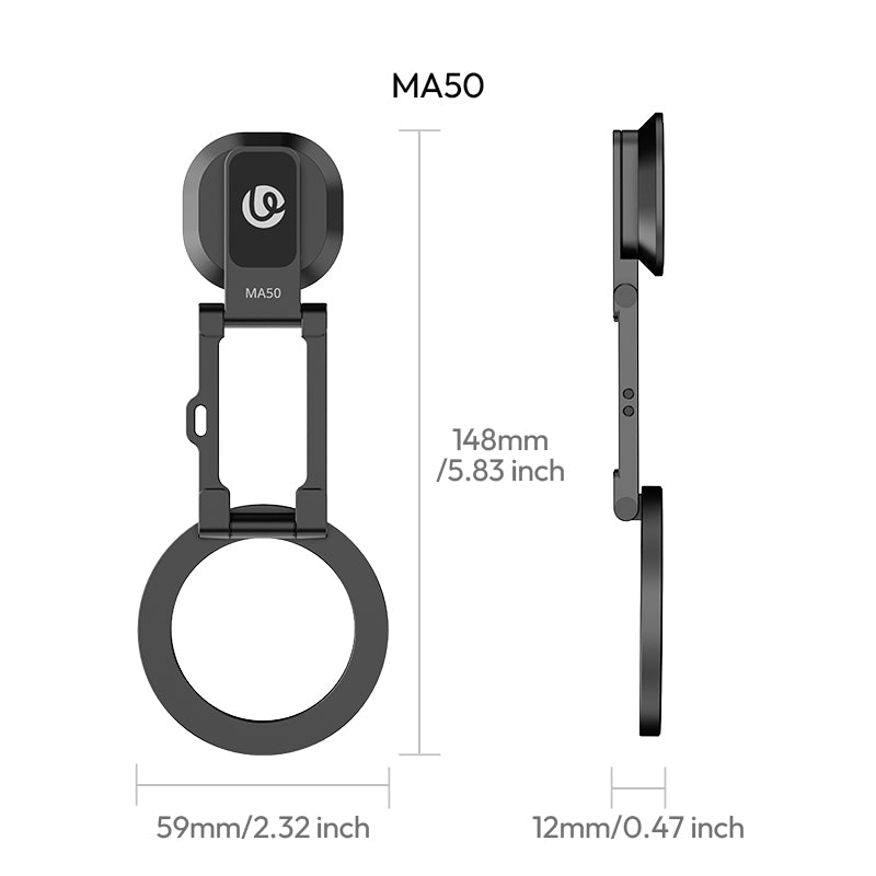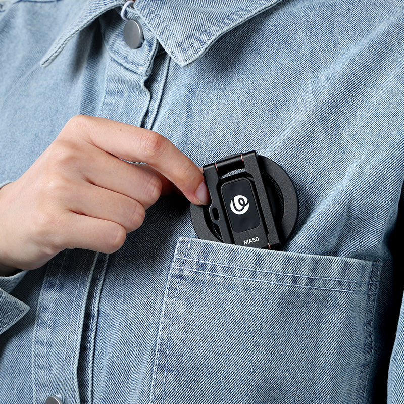 As Slim As Your Phone. At just 12mm thick when folded—about the same as a smartphone—the MA50 slips easily into your pocket. Versatile Carrying Options: Backpack Strap Mount