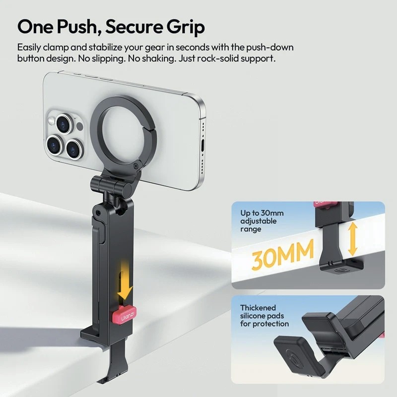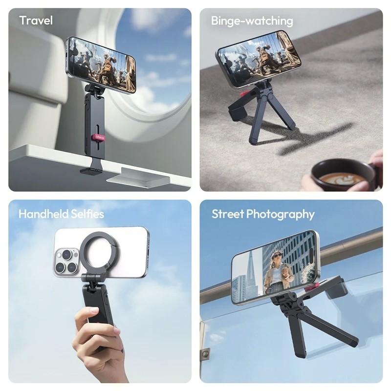 The Ulanzi MA88 MagLock Phone Holder Tripod is a versatile magnetic phone mount and mini tripod that combines MagSafe compatibility, 360° rotation, and multi-angle shooting modes. It can be used as a desktop tripod, handheld selfie stick, or clipped to surfaces for creative “Mantis Mode” shots.