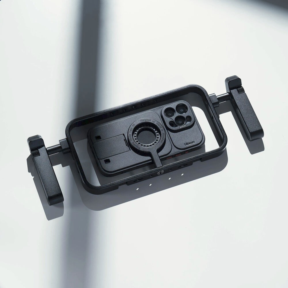 The Ulanzi MG-001 Magnetic Smartphone Cage is a versatile aluminum cage designed for smartphones with MagSafe compatibility, such as iPhone 12–15 series. Perfect for professional videography, vlogging, and live streaming, it includes dual detachable grips, multiple mounting points, and a magnetic stand for stable horizontal or vertical shooting.