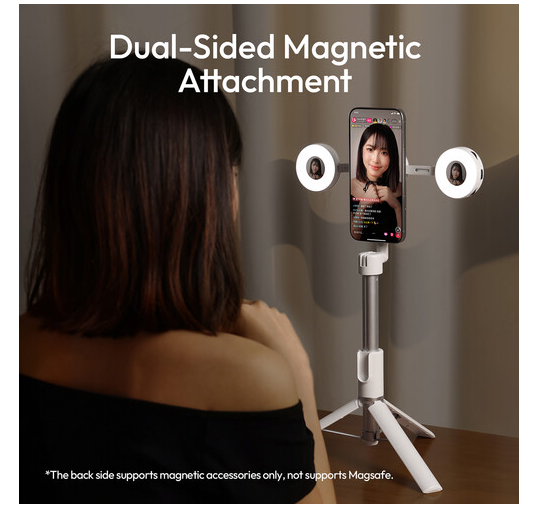 This magnetic fill light attaches easily to any MagSafe-compatible device or case, allowing for hands-free setup. The extendable rod adds additional flexibility, enabling you to adjust the angle and position of the light for seamless coverage. It can also act as a handle for ergonomic control, ensuring you can adjust the light to any requirement during filming or shooting.