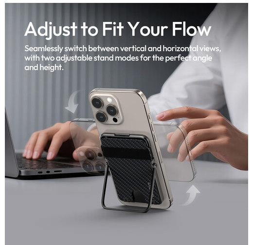 A powerful MagSafe-compatible magnetic ring securely attaches the holder to the back of your phone, while the integrated kickstand lets you prop your phone up in either portrait or landscape orientation—ideal for watching videos, video calls, or hands-free browsing.