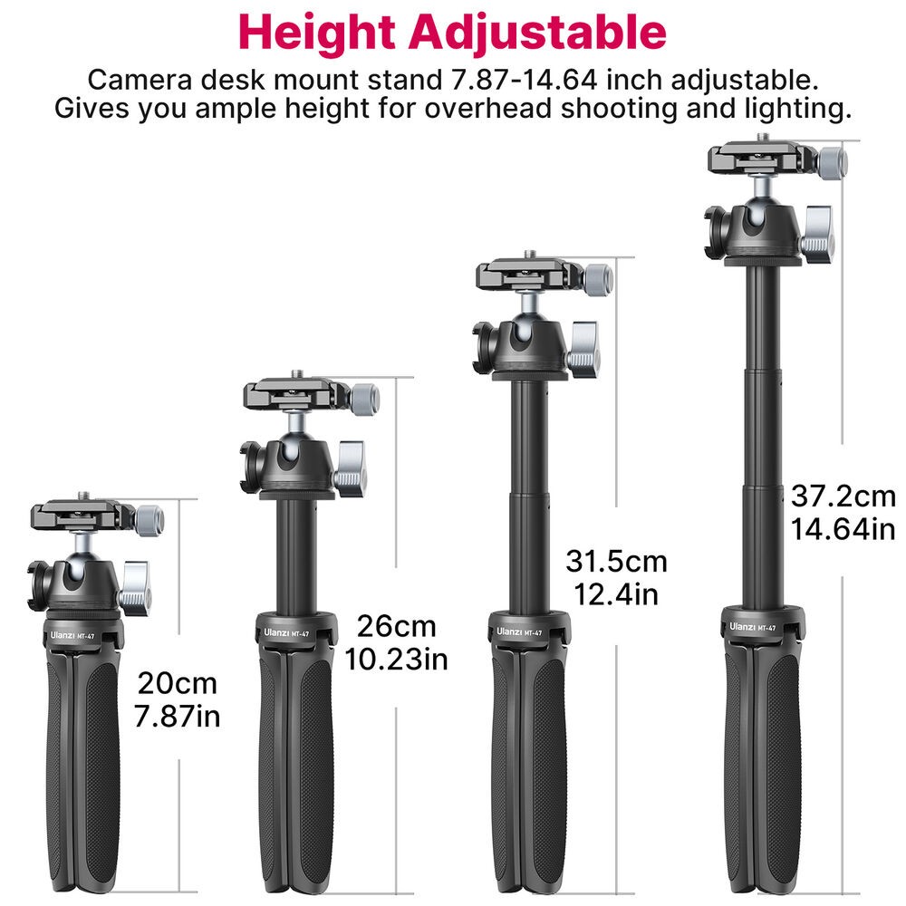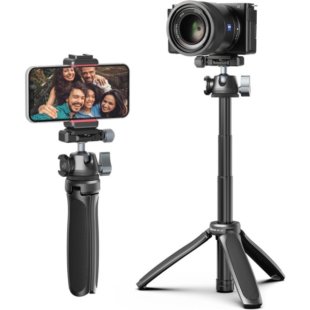 The Ulanzi MT-47 Mini Tabletop Tripod is a compact, all-metal support note designed for creators who need fast setup, portability, and professional quick-release convenience. Featuring a slim Arca-Swiss–type quick release ball head, rotating cold shoe, and a foldable design that doubles as a camera handle or selfie stick, it’s ideal for vlogging, streaming, and travel shooting.